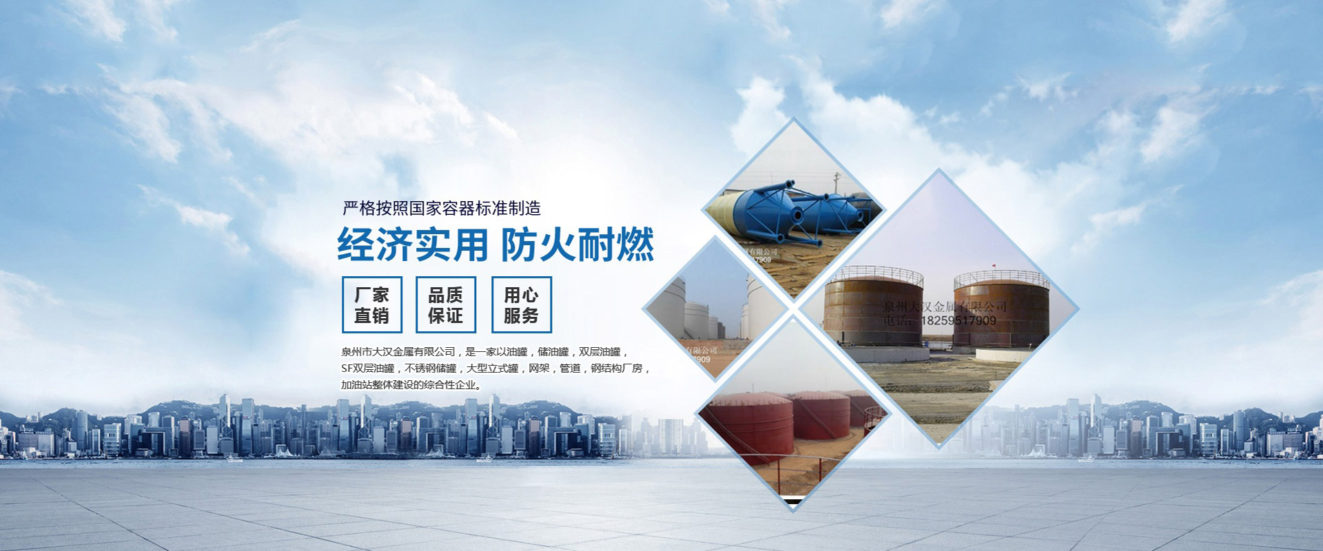 泉州市大漢金屬有限公司,是一家以油罐、儲油罐、雙層油罐、SF雙層油罐、不銹鋼儲罐、大型立式罐、網架、管道、鋼結構廠房、加油站整體建設的綜合性企業。本公司以技術人員、施工經驗豐富的工程隊、自動化設備、擁有鋼結構建筑、螺栓球網架設計安裝技術力量,嚴格按照國家容器標準制造,是一家產品開發并生產各種壓力容器和制造金屬結構工程,化工石油工程安裝的大型企業。近多年來,以質量穩定、客戶至上、信譽為本,以科技求發展,贏得廣大客戶支持與信賴。